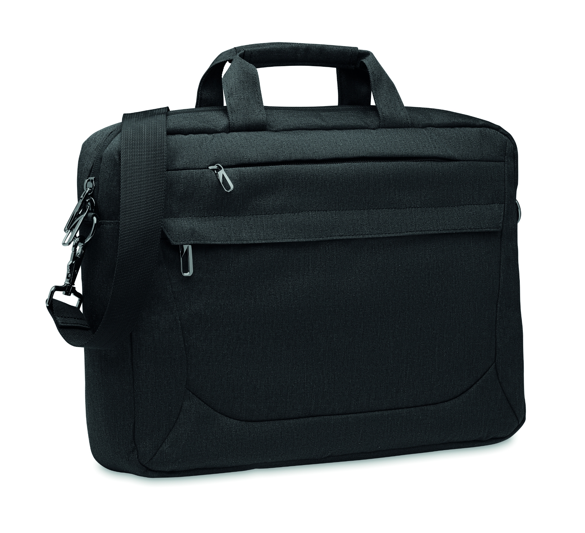 Zaino per laptop da 15'' in poliestere 600d rpet. 2 scomparti interni principali e ampia tasca frontale con cerniera. una piccola tasca con cerniera. spallacci removibili e regolabili. porta trolley.