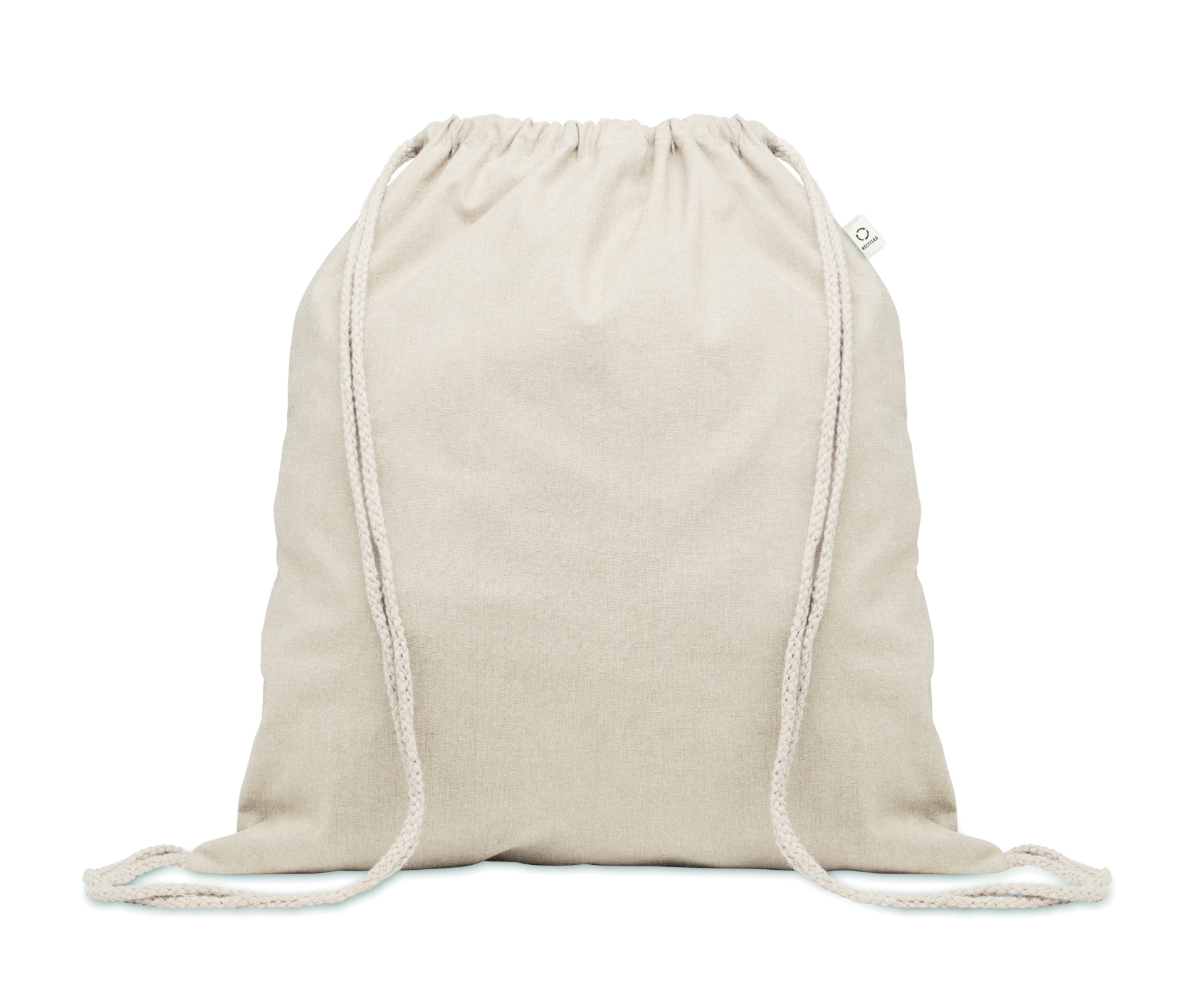 Sacca in cotone riciclato pre-consumo (70%) e rpet (30%). 140 gr/m². questo articolo può restringersi dopo la stampa.