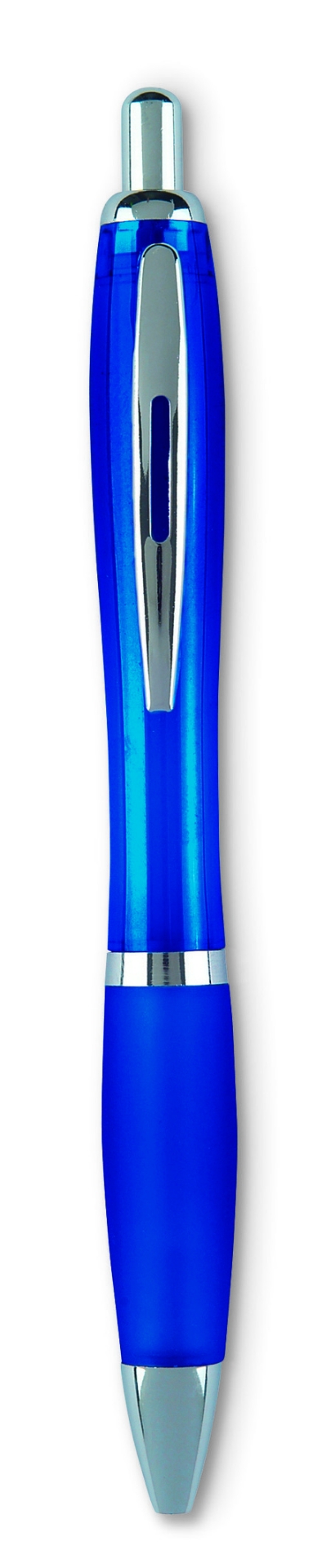 Penna a sfera a pulsante in abs riciclato con impugnatura morbida. inchiostro nero.