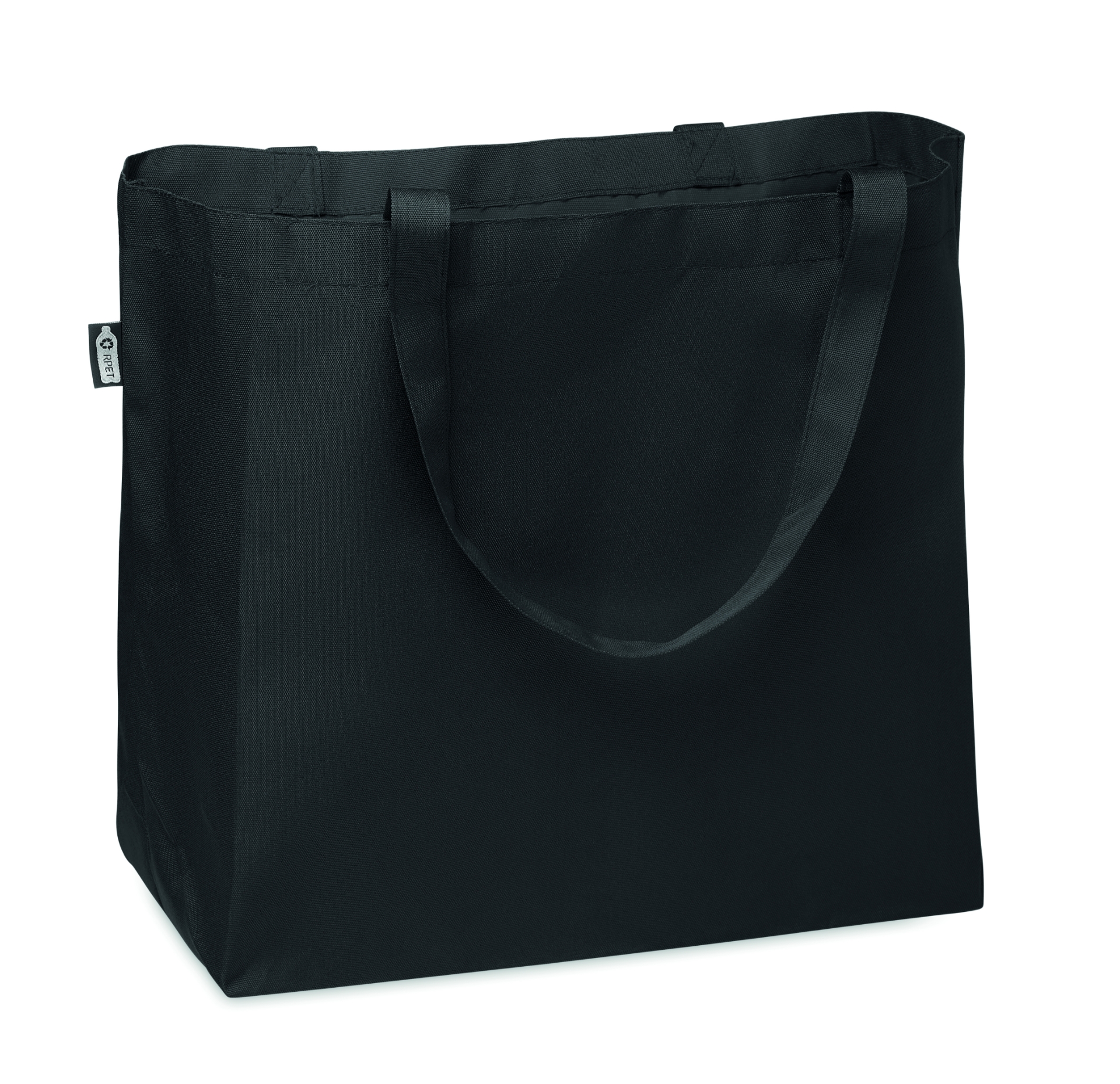 Ampia shopper o borsa mare in rpet 600d con manici lunghi e soffietto.