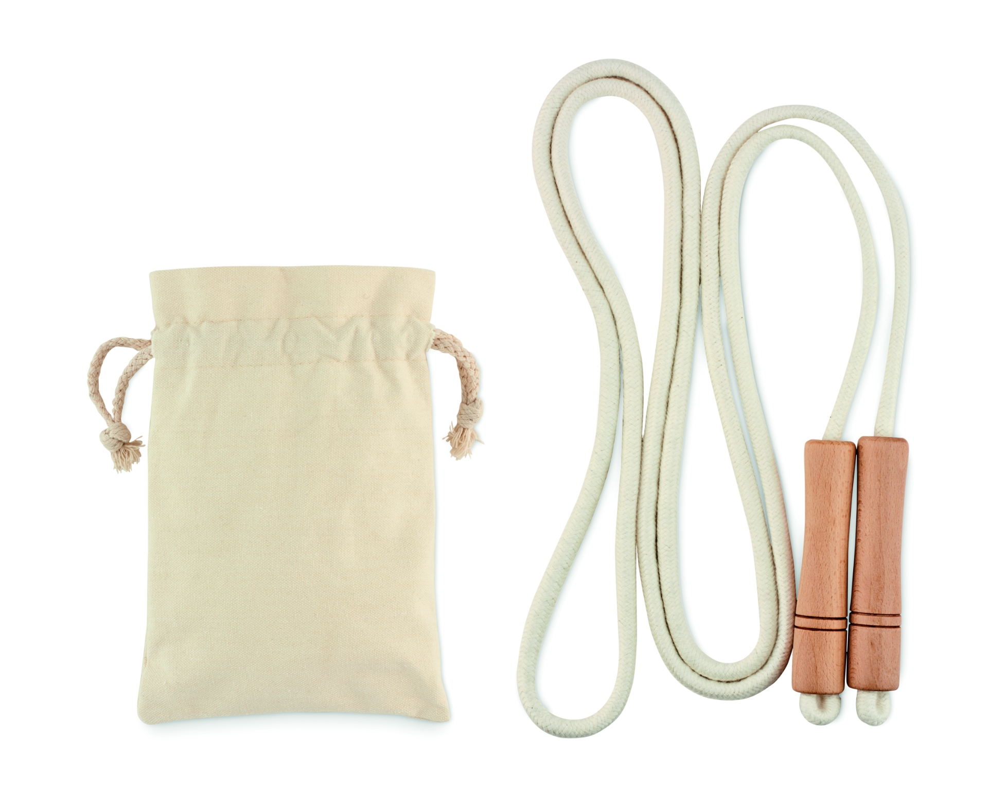 Corda per saltare in cotone con manici in legno. fornito in custodia di cotone.