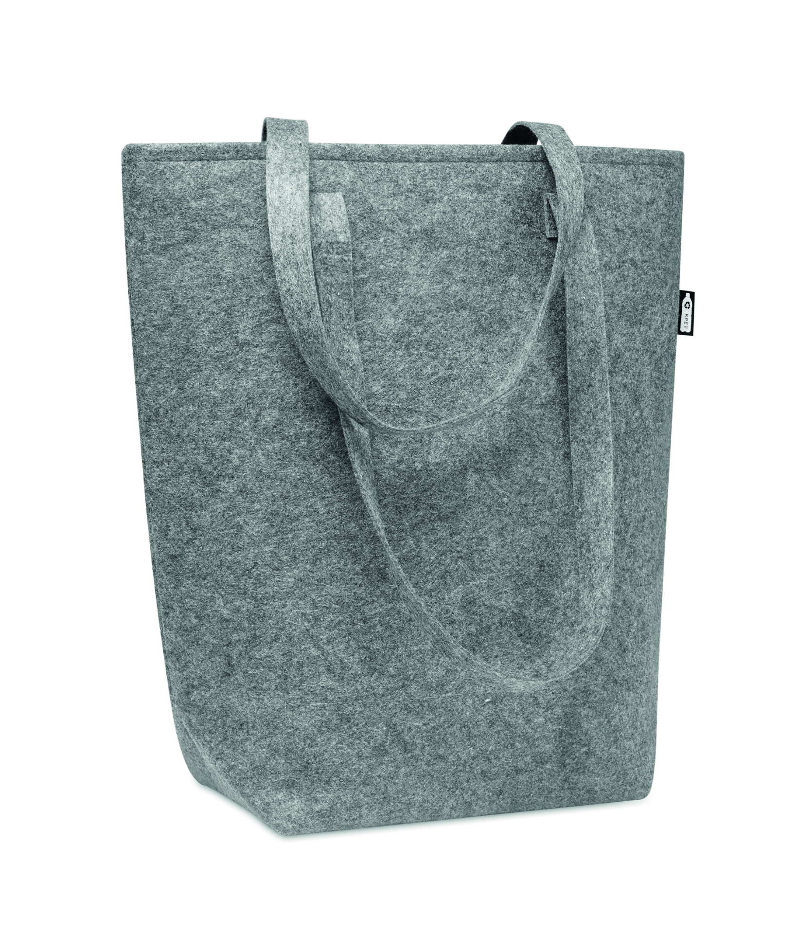 Shopper in feltro rpet con manici lunghi e soffietto. spessore del feltro: 2 mm.