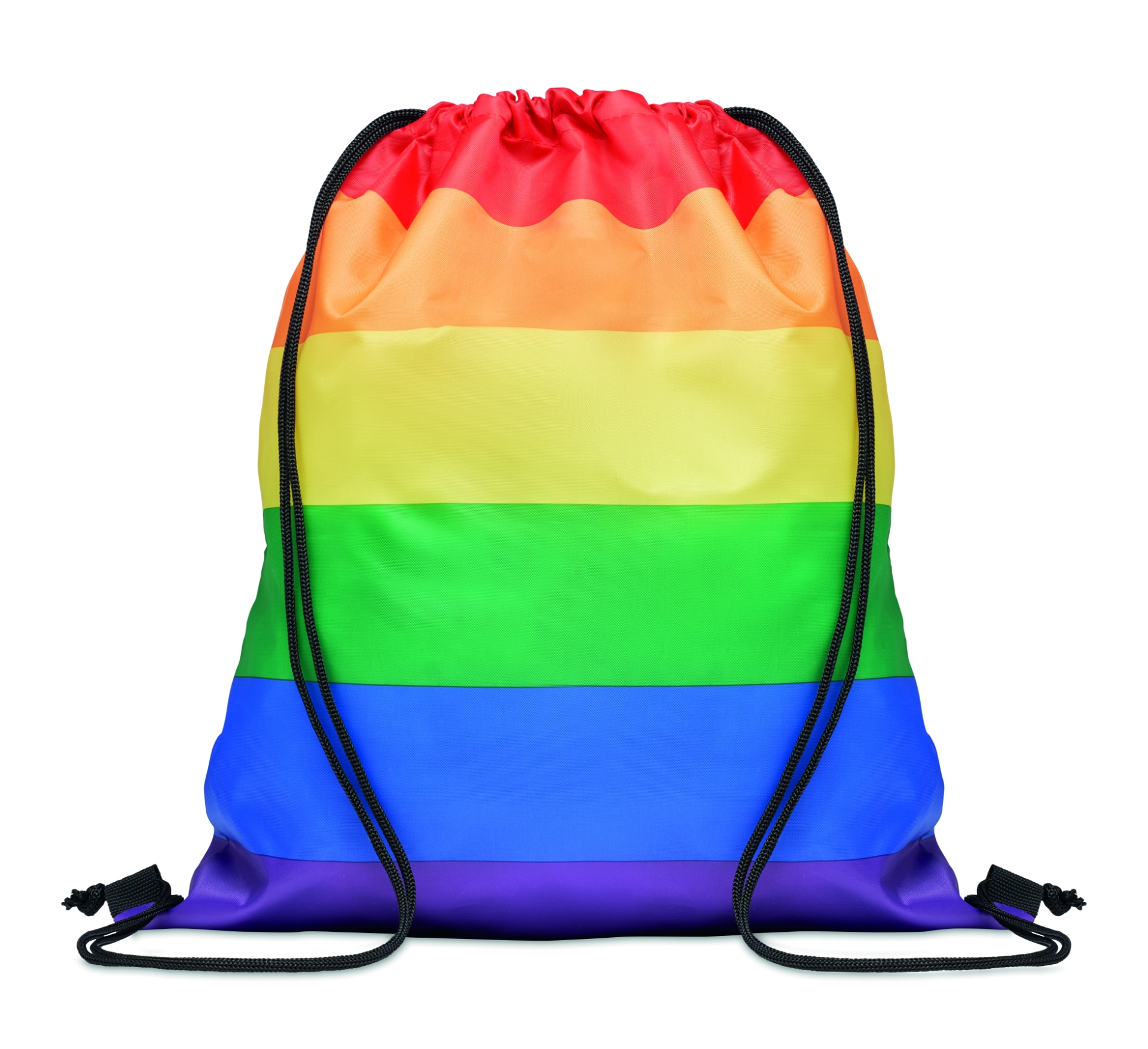 Sacca arcobaleno in poliestere 210d rpet con cordino in pp.