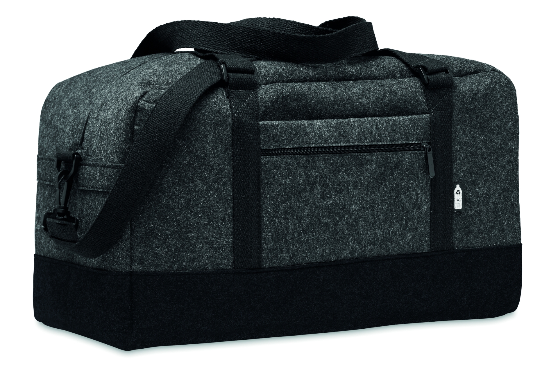 Borsa sport/fitness o weekend in feltro rpet con tasca frontale con cerniera, manici in tela e tracolla regolabile staccabile.