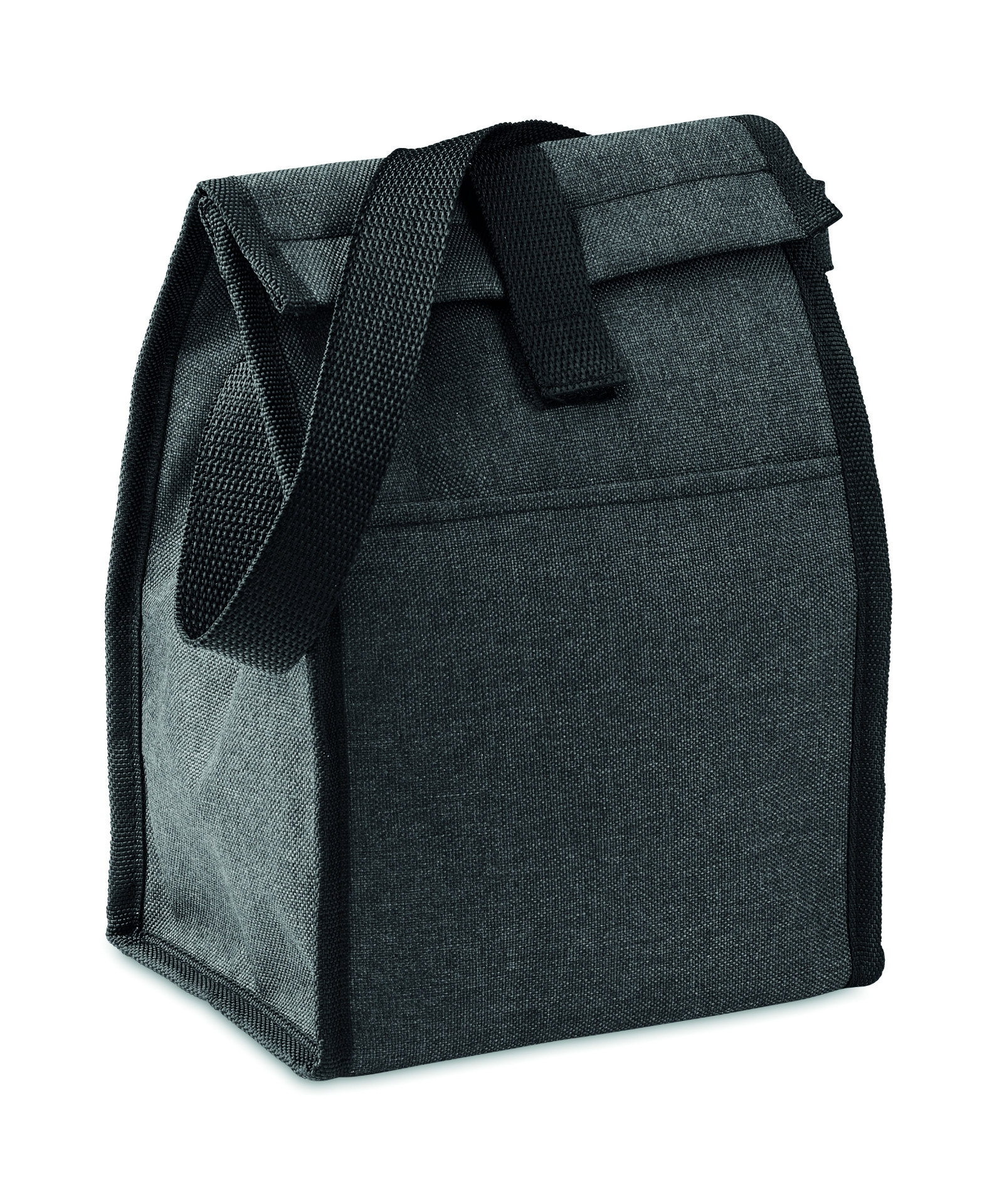 Borsa da pranzo isolata in rpet 600d con tasca frontale. capacità 3l. materiale isolante: 2 mm di schiuma pe con foglio di alluminio.