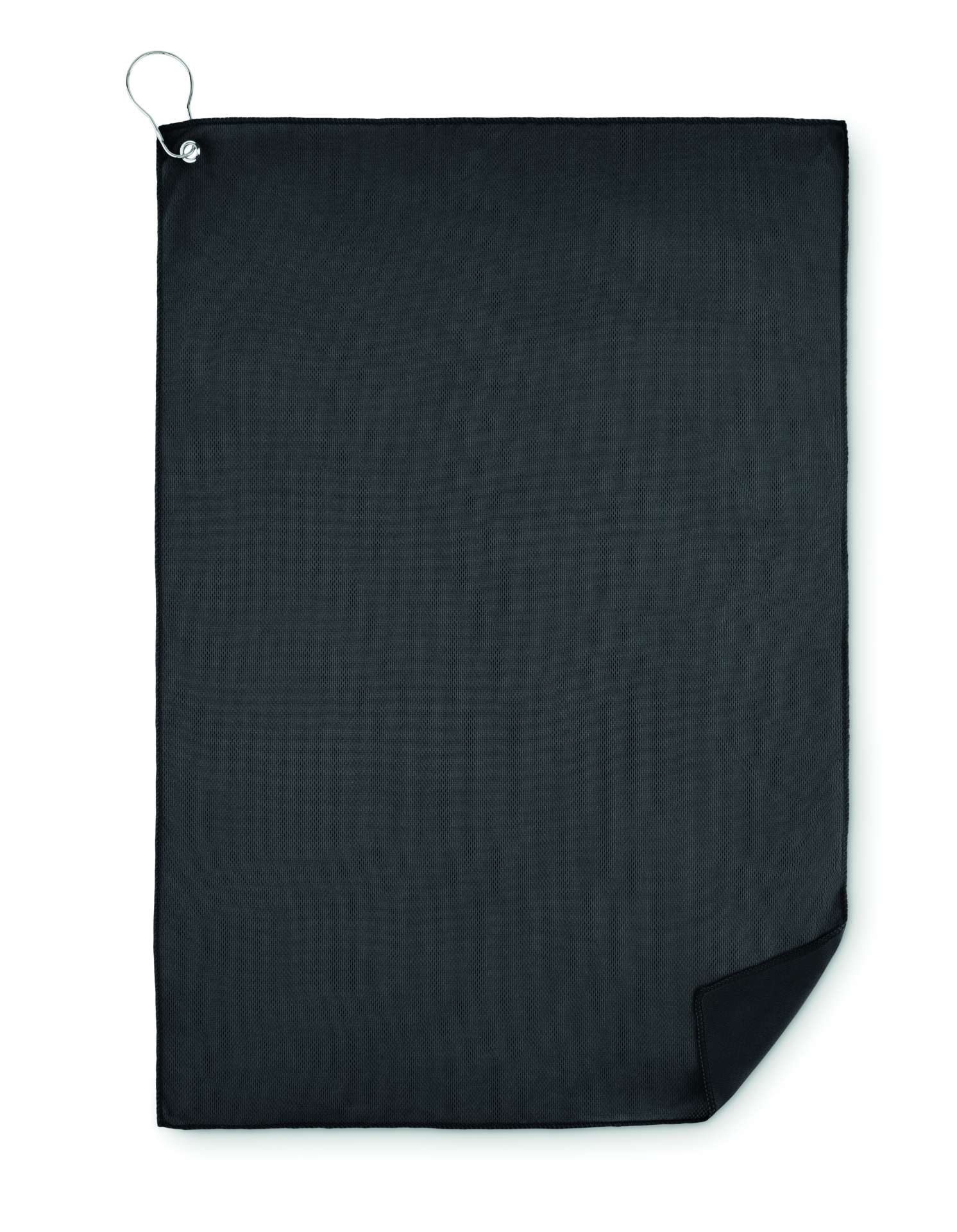 Asciugamano da golf in poliestere rpet con gancio di ferro. dimensioni dell'asciugamano: 40x60cm.
