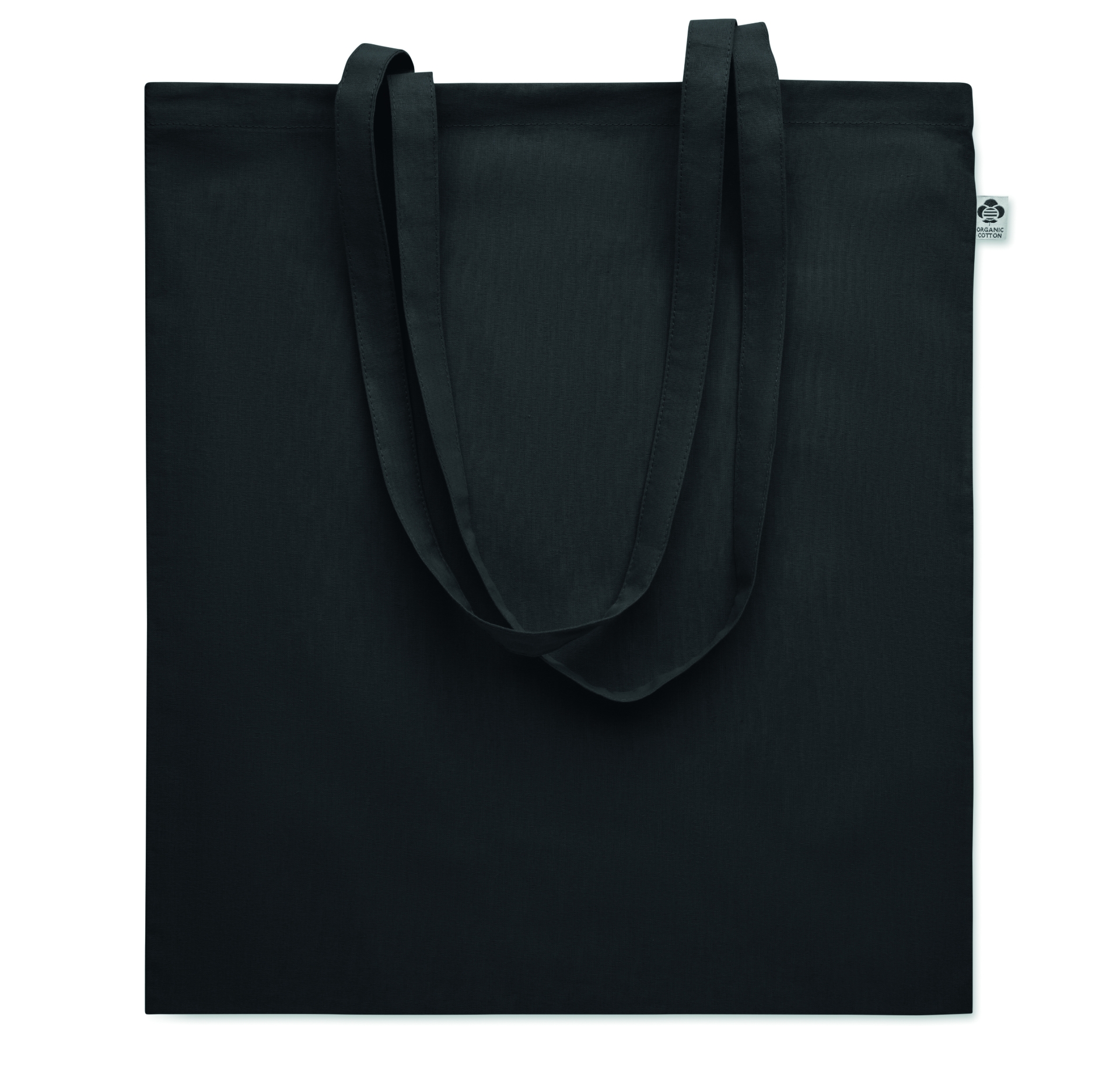 Shopper in cotone biologico con manici lunghi. 180 gr/m². prodotta secondo uno standard certificato per l'uso di sostanze nocive nel settore tessile.