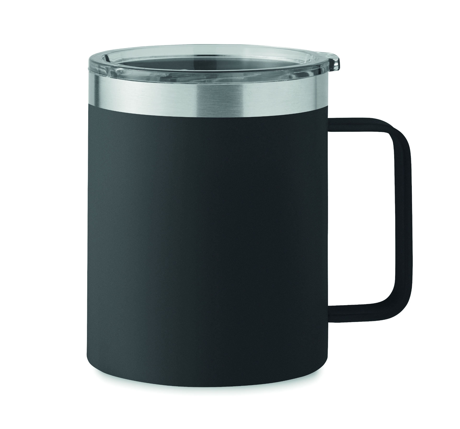 Tazza a doppio strato in acciaio inox riciclato (90% acciaio inox riciclato e 10% acciaio inox) con coperchio scorrevole. capacità: 300 ml.
