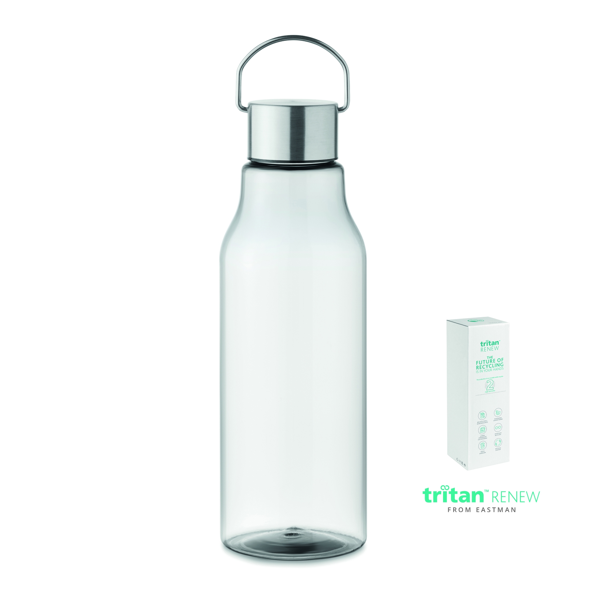Bottiglia in tritan renew™, senza bpa, coperchio con manico in acciaio inox. senza perdite. 800 ml. ricavato dal 50% di rifiuti plastici utilizzando il bilancio di massa certificato dall'iscc.