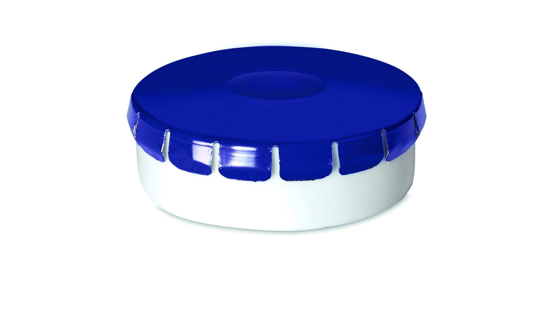 12 gr di mentine senza zucchero in contenitore di plastica e coperchio di latta e fondo in plastica. apertura a pressione.