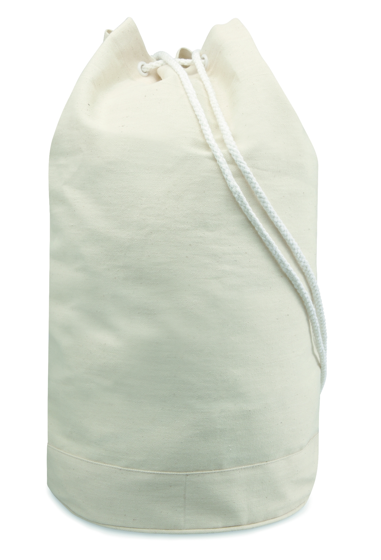Sacca in cotone naturale da 200g con tracolla bianca.