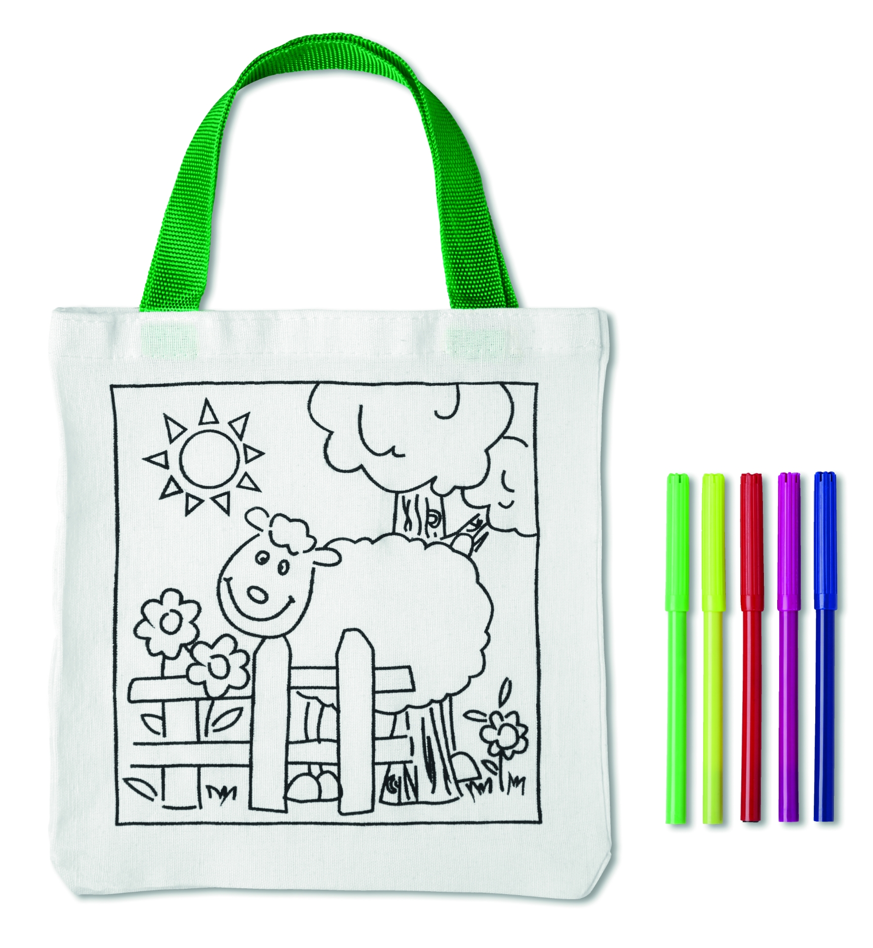 Shopper in cotone con 5 pennarelli colorati. colorabile. 200gr.