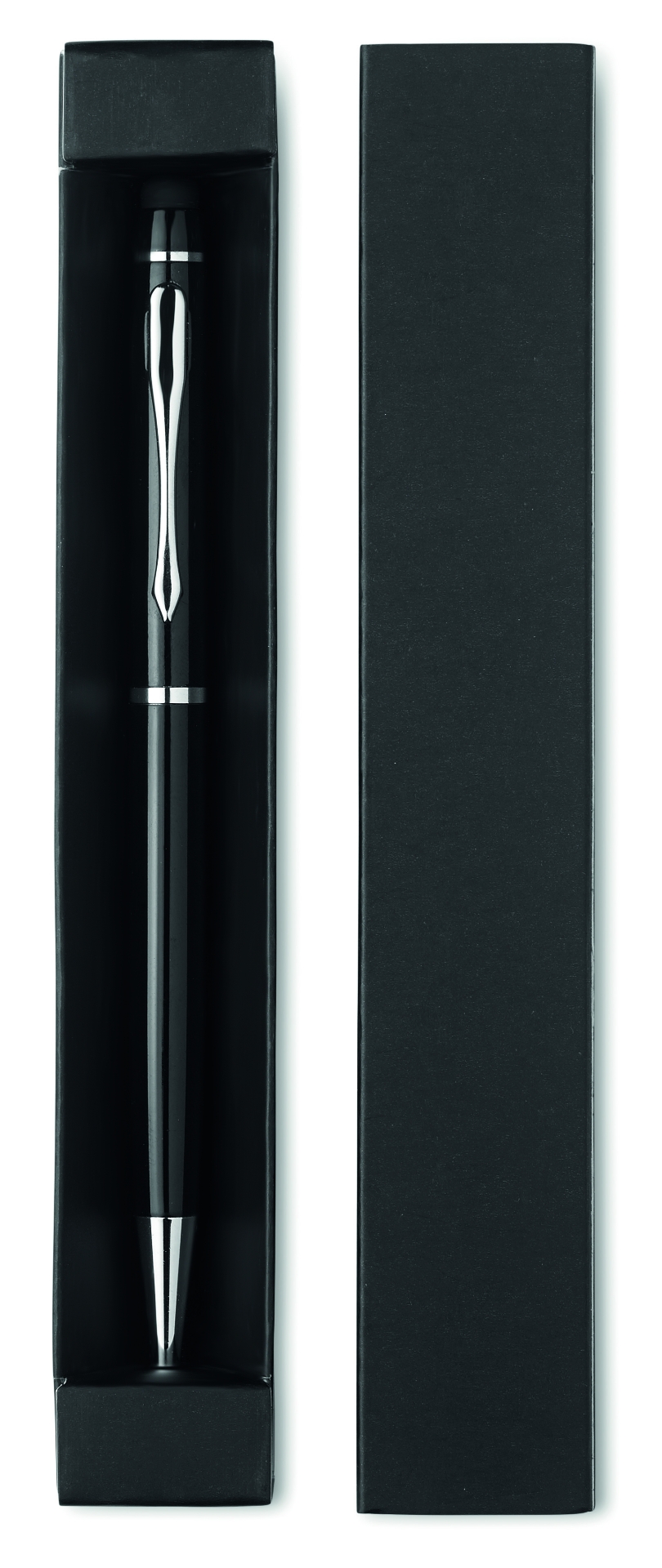 Penna a sfera twist in alluminio con punta touch screen. refill blue. confezione in cartoncino.