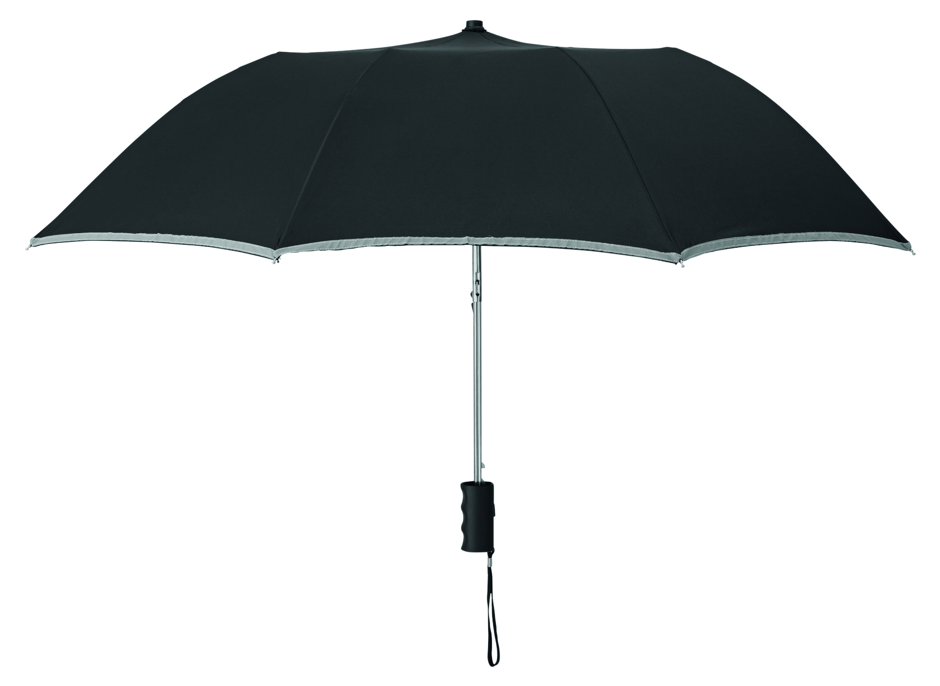 Ombrello 21'' double face in pongee con manico in plastica nera. cuciture in grigio metallizzato. astuccio coordinato. apertura automatica.