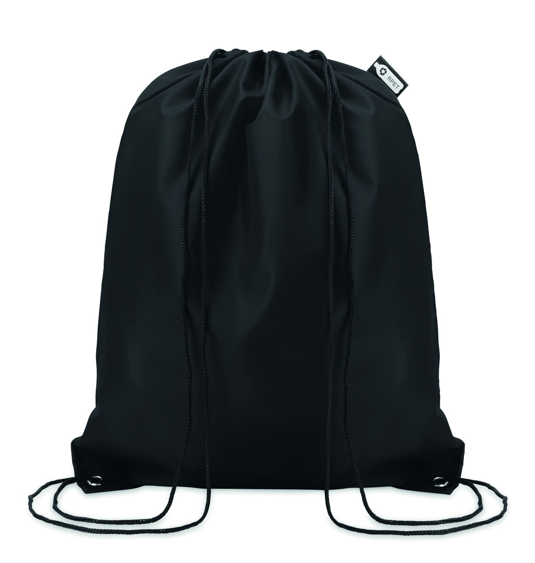 Sacca in rpet 190t con cordini in pp. materiale proveniente da bottiglie riciclate.