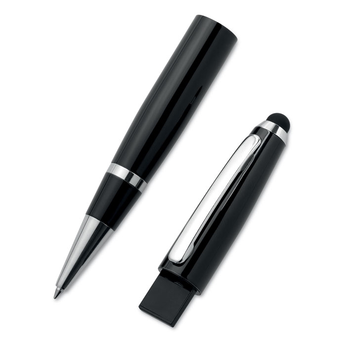 Usb flash drive penna a sfera in metallo con rifiniture cromate e touchscreen. inchiostro nero.