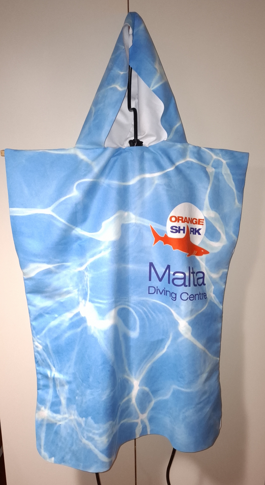 Poncho in microfibra di poliestere stampabile all over con stampa in quadricomia di alta qualità . Due taglie adulto M e L . Scrivici per i prezzi e maggiori informazioni
